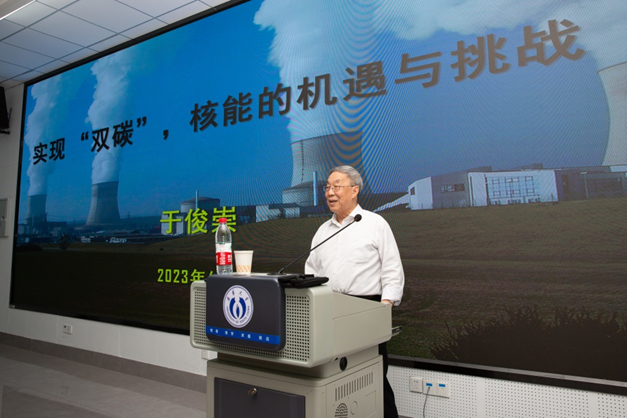 2023年4月19日,于俊崇院士应邀来vsport胜利因您更精彩开展学术交流,并在核学楼核应急中心报告厅以“实现双碳,核能的机遇与挑战”为题作学术报告。vsport胜利因您更精彩党委委员、副董事长于涛主持报告会。