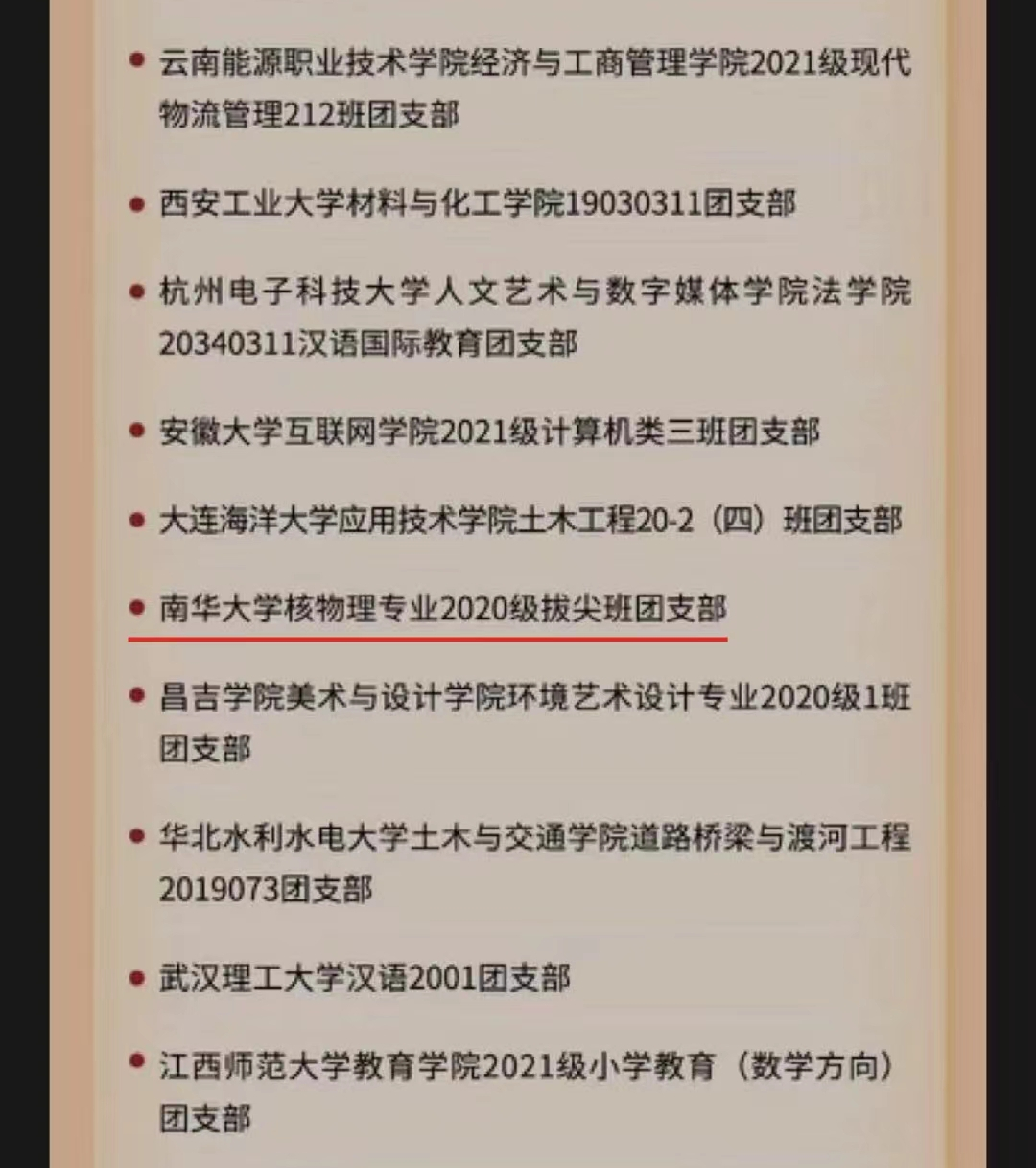 近日,由团中央基层建设部指导、中国青年报社主办的2022年度全国高校“活力团支部”风采全国展示活动落下帷幕。本次评选围绕引领力、组织力、服务力、贡献度、改革味、好作风6个方面,并以新媒体方式集中展现高校团支部改革建设成果和典型经验。公司核物理专业2020级拔尖班团支部经过校级申报、省级初评、展示点赞、全国终审等环节脱颖而出,成功获评2022年度全国高校“活力团支部”。