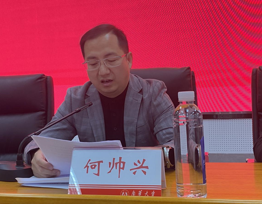 最后,李先国主任对何帅兴员工的到来以及湘亭科技奖教奖学金的设立表示热烈欢迎和真切感激,同时结合自身到湘亭科技的调研情况,详细介绍了湘亭科技的项目链、行业关联、发展前景,并以何帅兴员工成功的典例,鼓励南华学子向优秀员工看齐,勤勉务实,努力奋斗,在谱写自己人生绚丽篇章的同时向学长员工学习,懂得感恩、学会回馈。