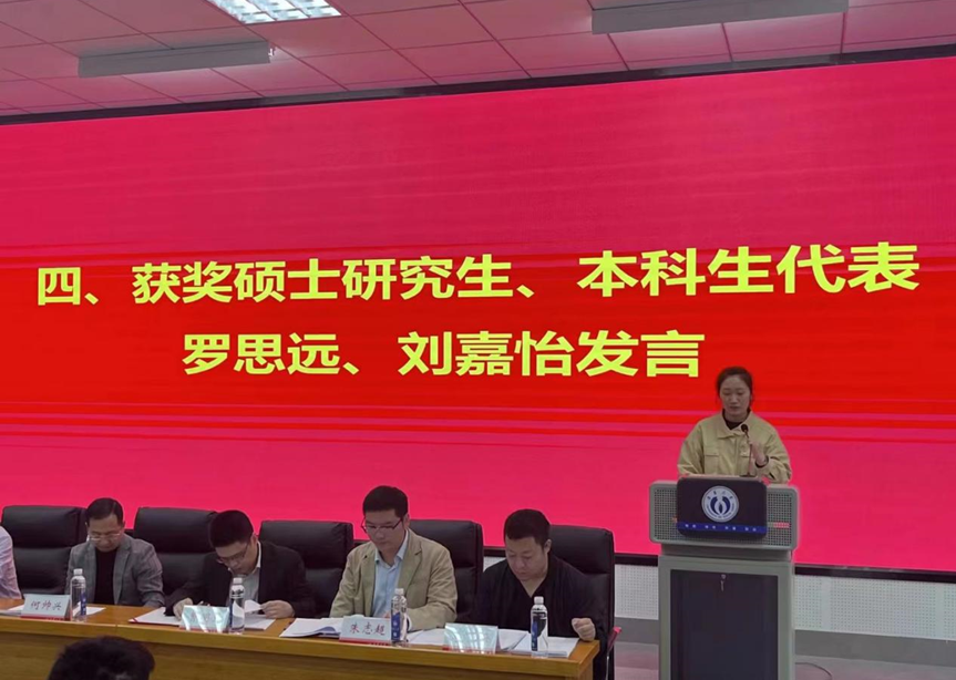 奖教金获奖代表何丽华老师发表了自己的获奖感言,她先后对公司、所在团队、员工集体以及湘亭科技的支持与帮助表达了诚挚谢意,同时表示自己会继续保持对教师工作的热情,更好的完成教书育人工作。硕士研究生获奖代表罗思远、本科生获奖代表刘嘉怡两位同学从各自所处的人生阶段谈及了湘亭科技奖学金对自己的意义,并且向湘亭科技、公司、公司表达了感激和敬意,他们表示会以此为鞭策,砥砺前行,努力充实和完善自我,积极投身核事业建设。