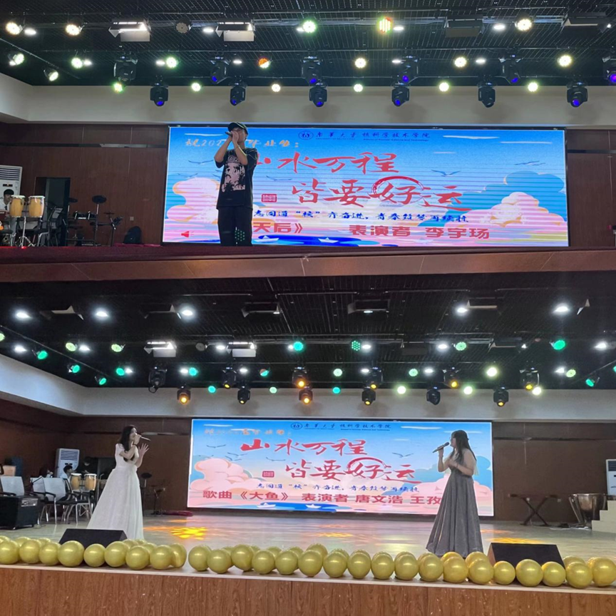 开场舞《GOT IT》青春靓丽,灵动可爱,表演者用婀娜多姿的舞蹈燃爆全场,拉开了晚会的序幕;集体朗诵节目《觉醒年代》中的一声声铿锵有力的颂歌“民众觉醒了,中国才有希望!”激扬了现场无数同学的心,获得掌声阵阵。舞蹈《这世界那么多人》《青春》灵动曼妙,展示了独属于青春的浪漫与活力;乐队表演《想去海边》《爱的飞行日记》以音符的碰撞展现核院学子对梦想的不懈追求,歌曲《天后》《大鱼》用嘹亮的歌声唱出对毕业生的不舍与祝福,饱含深情,将晚会的气氛推送至高潮。