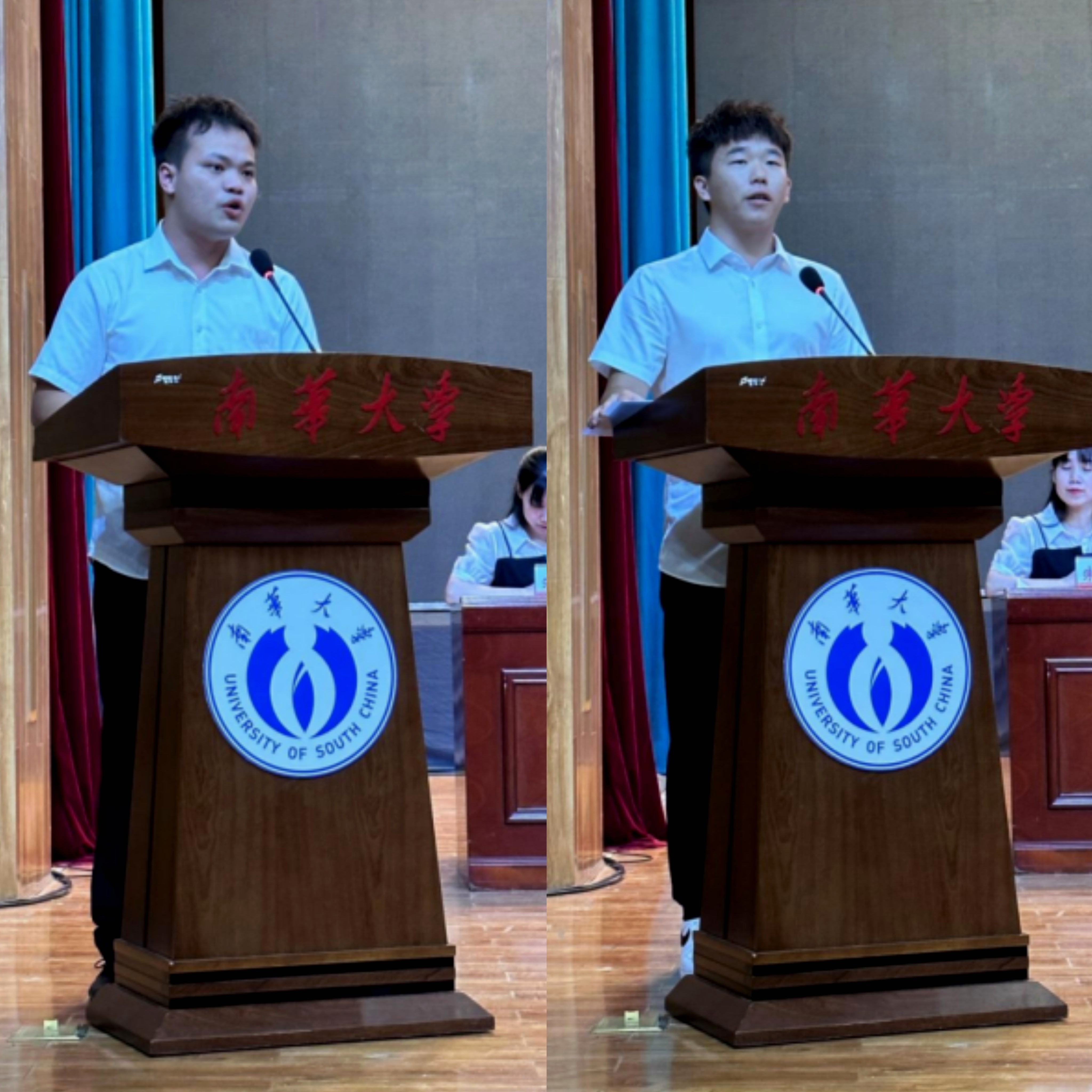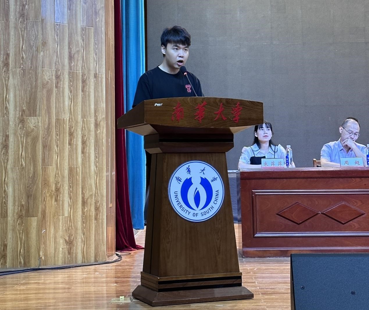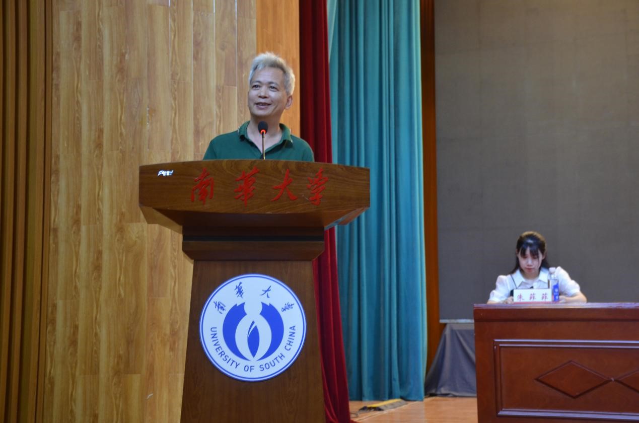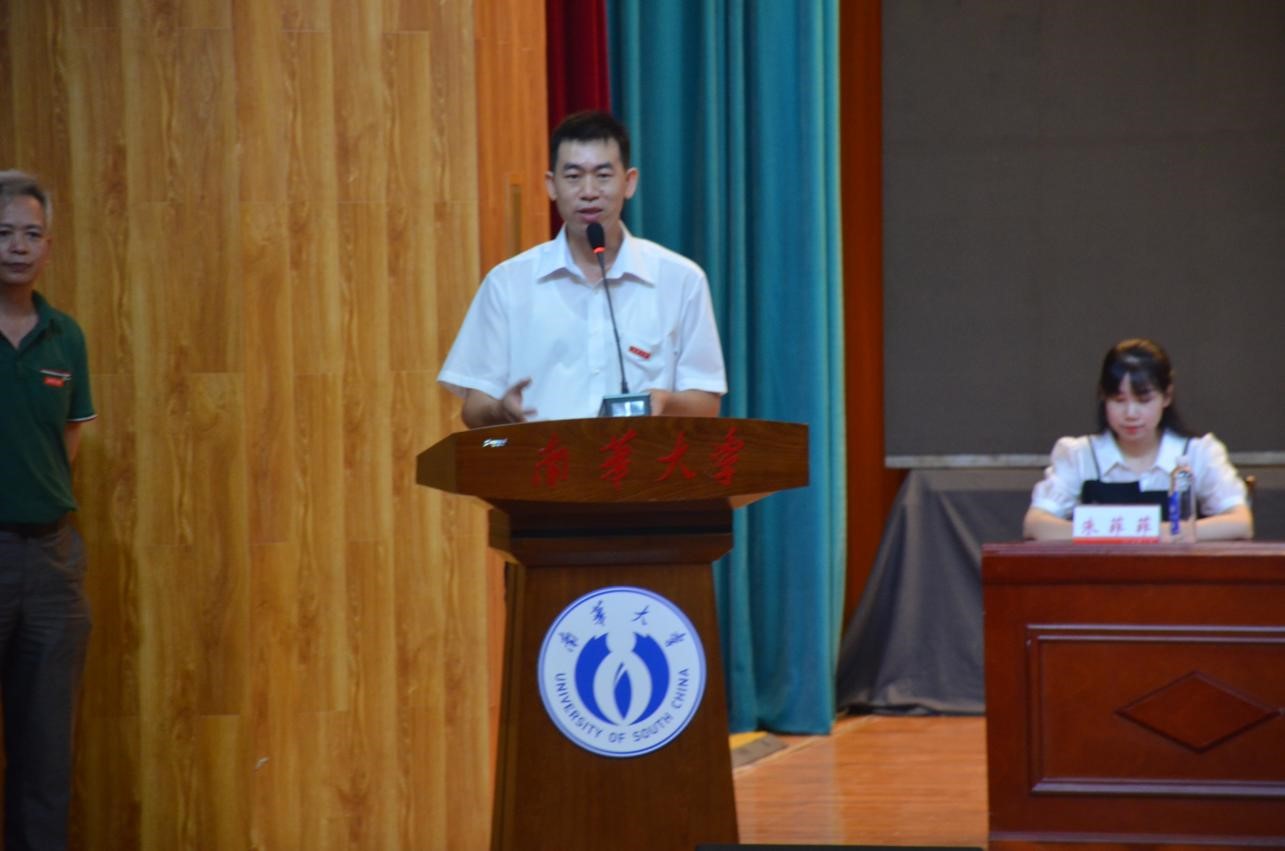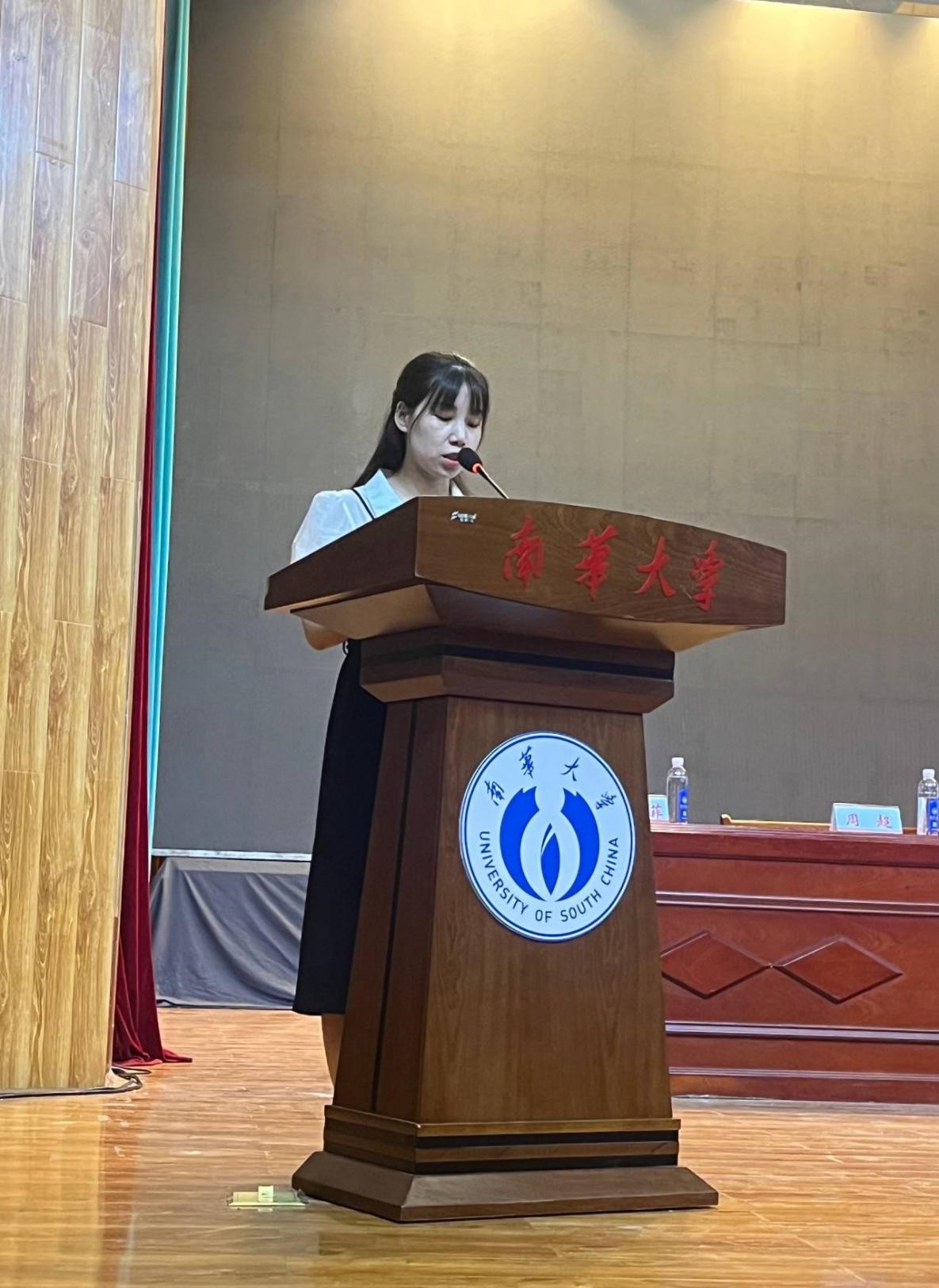 研究生资道政同学作为老生代表向师弟师妹们分享了三点感悟:第一,立足新起点,需要确立目标;第二,奋进新征程,需要怀抱热情;第三,投身新时代,需要厚植情怀。希望大家秉持vsport胜利因您更精彩“明德、博学、求是、致远”的校训,开拓进取、勇于创新,铸造属于南华核院人的美好明天。
