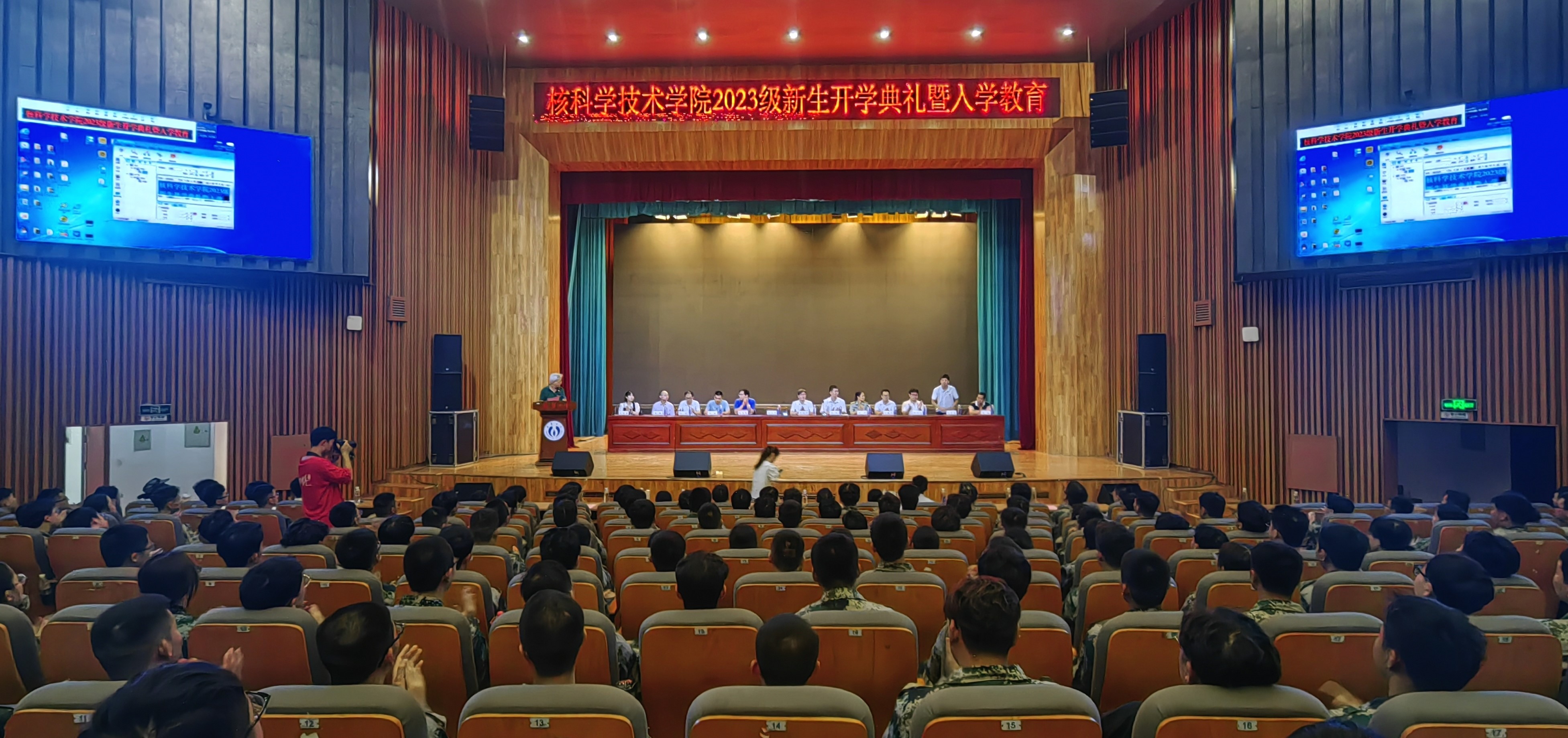 之后,大会进入入学教育环节。核工程与核技术系主任冯松老师、辐射防护与核安全系主任何正忠老师、核化工与核燃料工程系主任殷祥标老师、核物理系主任向东老师依次向新同学们介绍了四个专业。他们分别从团队队伍、课程安排、学习内容等方面做了详细的介绍。希望大家能学好专业知识,利用好公司的平台资源,未来成为专业发展的主力军。