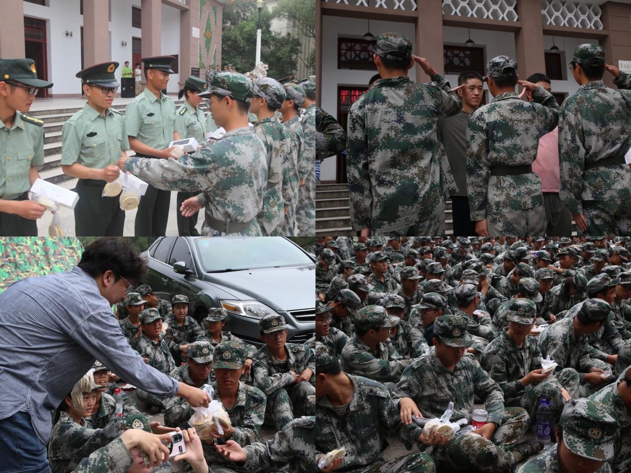 宣誓完毕后,新生代表们为教官献上礼物和月饼,并对教官们苦心磨练同学们意志表达感谢,教官们也纷纷向同学们致意,表达对同学们三周艰苦训练的肯定和对美好未来的祝福;同时新生代表们也为全体老师、班助献上特产月饼,对这一段时间的悉心指导和照顾表示感谢。全体老师、班助也为全体新生送上月饼,师生互动,欢度中秋。