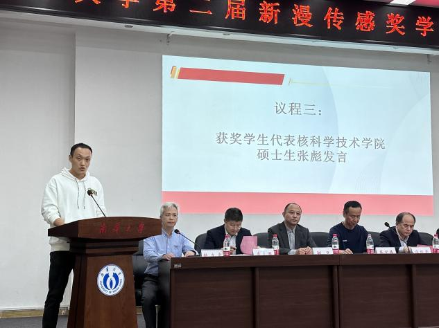 获奖员工代表vsport21级硕士张彪发言。“获得新漫传感奖学金对我来说是一种巨大的荣誉和鼓励,这个奖学金不仅是对我学术水平的认可,更是我前行道路上的一份动力和鞭策。我衷心感谢新漫传感科技有限公司,感谢你们对教育事业的支持和对年轻学子的鼓励。我期待能够加入贵公司,也期待能对贵公司的发展贡献自己的力量。”张彪同学还表示,获得此次奖学金是一份荣誉,更是一份责任。将会珍惜此次机会,继续保持学术上的优异表现,同时积极回馈社会,饮水思源,不负期待。