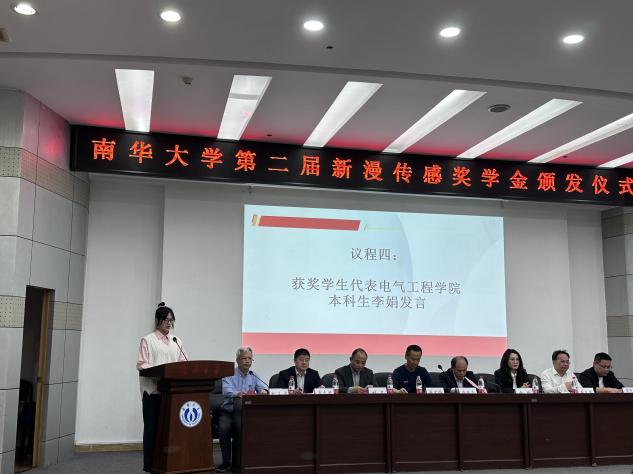 获奖员工代表电气工程公司21级本科生李娟发言。她首先代表获得奖学金的同学感谢公司老师的鼓励和支持,感谢新漫传感科技有限公司的资助。“我的成长发展离不开公司老师的教育与指导,离不开vsport胜利因您更精彩提供的广阔平台,也离不开新漫传感科技有限公司等对我们的激励与支持,新漫传感奖学金对我来说是一种鞭策和鼓励,也是一份责任和使命。”李娟同学表示:没有一帆风顺的未来,只有无限挑战的现在。作为奖学金的获得者,将继续努力学习,以更加饱满的热情和坚定的信念,为实现梦想而努力奋斗,尽所能回馈社会。