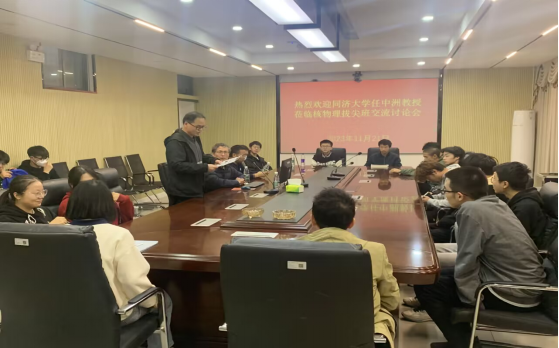 2023年11月22日,长江学者特聘教授、国家杰出青年基金获得者同济大学任中洲教授应邀参加公司核物理拔尖班交流讨论会,交流会由核物理系主任向东老师主持,部分核物理系教师、21级和22级核物理拔尖班全体员工及部分研究生参加交流讨论会。