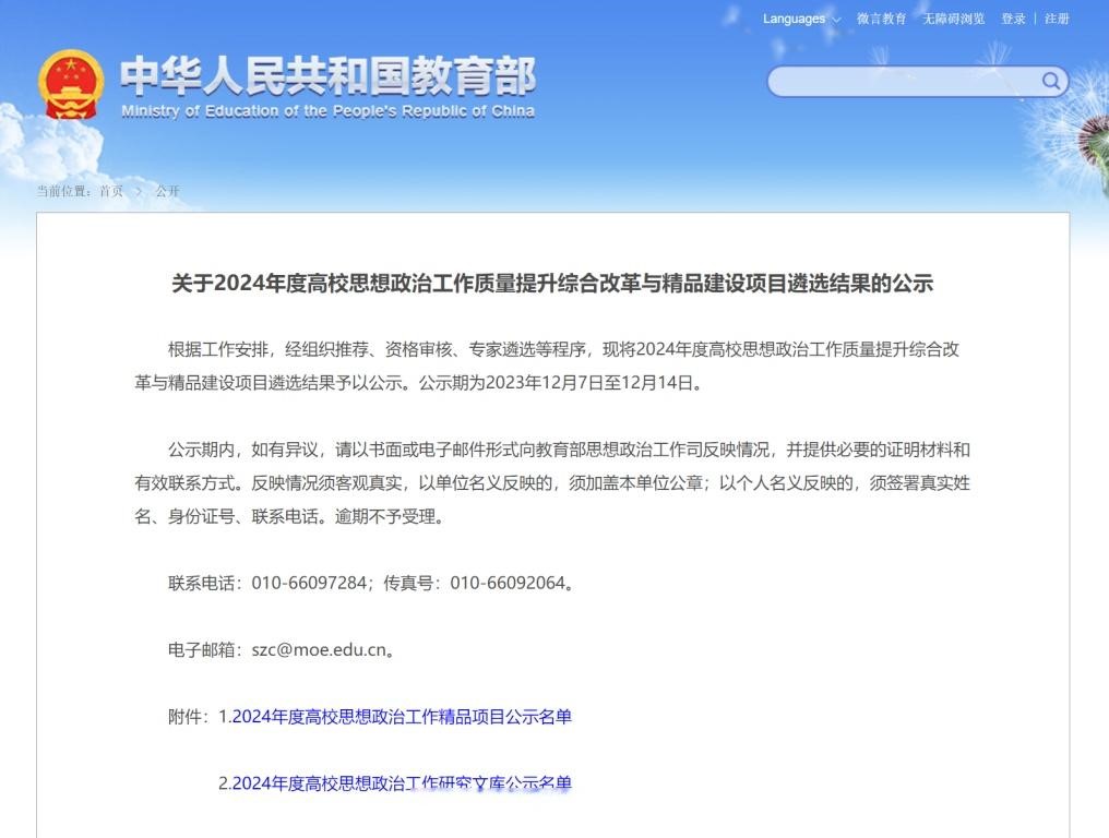 近日,教育部公示2024年度高校思想政治工作质量提升综合改革与精品建设项目遴选结果,公司“同心圆梦”辅导员工作室成功入选“2024年度高校辅导员名师工作室”,为湖南省省属高校唯一入选的辅导员工作室,也是公司首个国家级辅导员名师工作室。