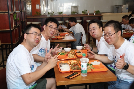 很快到了午间用餐时,即便毕业后大家各奔东西,依旧怀念青春时留下的校园味道,员工与家属们一同走进熟悉的公司食堂,品尝那些年曾共同享用过的校园美食。用餐过程中,大家围坐在一起,谈笑风生。食堂里洋溢着一种温馨和谐的氛围,仿佛时间从未流逝,他们依旧是那个朝气蓬勃的青年。每一道菜都唤起了员工们对老员工活的美好回忆,同时也让家属们感受到了校园文化的独特魅力。