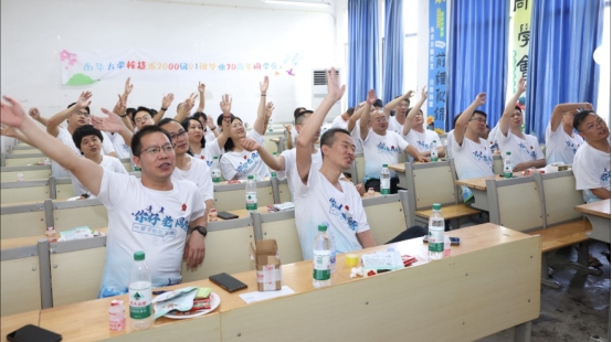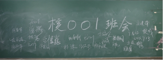 7月13日一早齐聚当年大学的上课教室——核学楼302教室。黑板上洋洋洒洒的主题,同学们先在班长的有序组织下,在黑板上姓名签到,落座在整整齐齐的课座位置里,如同当年共同学习般的情景重现。