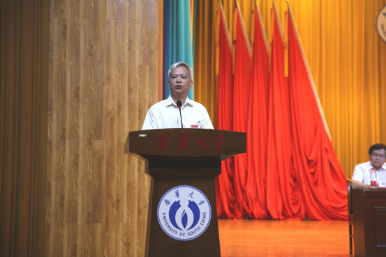 开学典礼在庄严的国歌声拉开序幕,赵立宏代表公司对525名本科生、156名研究生加入南华大家庭致以热烈的欢迎和问候。“一入南华门,终身南华人”“南华因为你们的到来也更加青春活力”赵立宏亲切地和同学们说到。