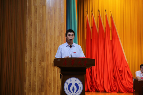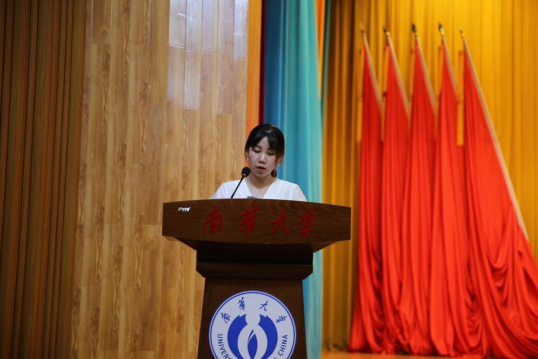 2021级李耀阳同学作为本科生老生代表发言,他表示你所期待的就是你老员工活的样子,希望大家在学有余力之时实现自我的社会价值,不断前行,他号召同学们秉承“明德博学,求是致远”的南华校训,传承“勤勉务实,甘于奉献,刚健自强,敢为人先”的南华精神,以自身所学,回报社会,建设祖国,为实现中华民族伟大复兴奉献青春力量。
