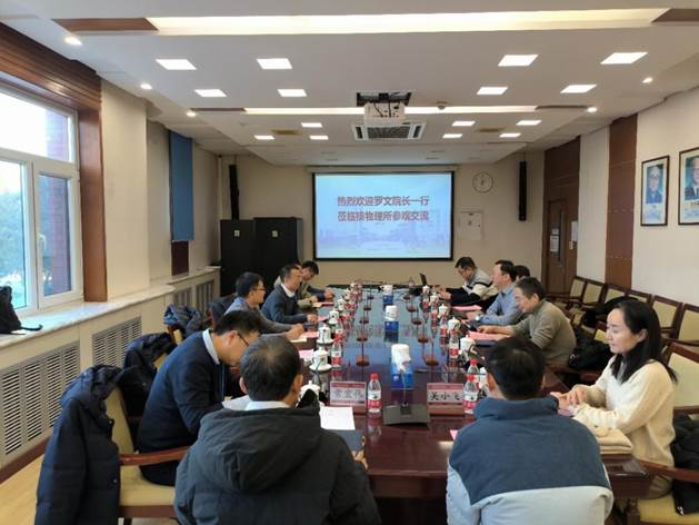25日下午的座谈会上,郭冰所长对罗文经理一行的到来表示热烈欢迎和衷心感谢,并介绍了核物理所的办所历程、基本架构以及近年来取得的代表性成果。罗文经理衷心感谢核物理所对公司改革发展的长期关心和支持,以及介绍了公司近年来在人才培养、科学研究、合作交流、公司文化等方面的工作进展,并希望以此次到访为契机,进一步发挥院所人才和科技资源优势,深化产学研融合,为国家核行业发展提供更有力的科技支撑和人才保障。随后,双方就科学研究、团队共建、产教融合、党建工作等方面展开了深入细致的交流。与会人员一致认为:双方同根同源、感情深厚、合作基础良好、合作空间广阔,希望以国家战略需求为导向,进一步加强相关领域的交流合作,实现优势互补和互利共赢。