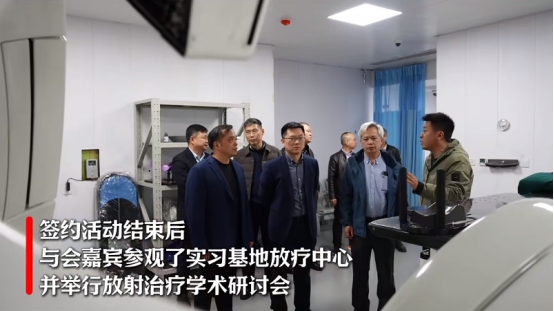 签约仪式结束后,赵立宏书记一行还分别参观了两家医院的放射治疗中心及放射治疗学术研讨会,并与医院领导就今后的合作开展了深入交流,期待借助实习基地这一平台,推动产学研深度融合,开创“核+医”领域发展新局面。