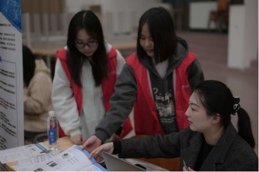 双选会现场设置了志愿者服务台,提供简历优化、面试建议指导、政策咨询等服务。公司派出20名就业志愿者,为参会的企业、同学提供全流程指引和热情服务,整个会场井然有序。
