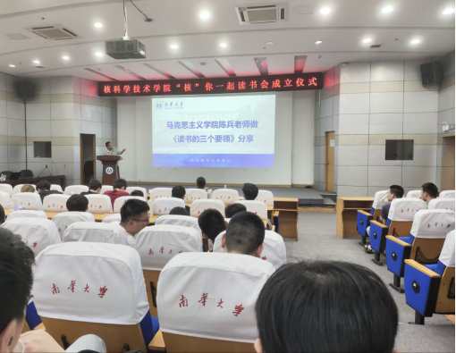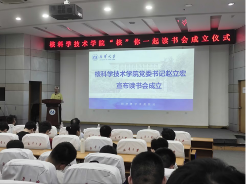 赵立宏宣布“核”你一起读书会正式成立。他分享了自己的阅读经历,与同学们亲切交流。他感慨地说,读书是一种潜移默化的影响,无论是一本好书还是一本杂书,无论是精读还是粗读,书中的内容总会不知不觉地进入我们的思想,并在成长过程中发挥潜移默化的作用。他希望同学们在阅读过程中要养成良好的阅读习惯,博学以致远。他鼓励同学们多读经典著作,不断拓宽自己的知识面和视野,培养独立思考和批判性思维能力。