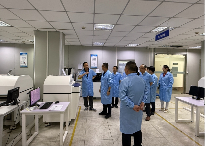 调研期间,于涛一行在新漫董事长兼总经理蒋宏伟等陪同下,深入企业核辐射探测器实验室、调试间、生产车间等核心区域进行实地考察。