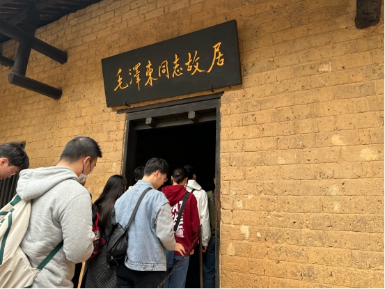 中午在经历短暂的休息后,党员们来到了本次党员活动的最后一站——毛泽东同志故居。从正堂到厨房,从里屋到客房,党员们一步步走入故里。池塘边、杨树下,仿佛伟人身躯历历在目。看到陈列品中有许多当年的旧物,如书桌、衣柜、油灯、石磨等,都曾留下毛泽东及其亲人的印迹。“一桥飞架南北,天堑变通途。”当思如今的生活来之不易!
