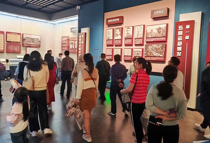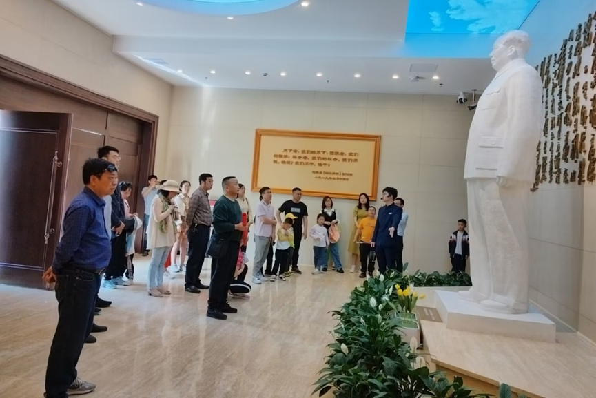 上午9点,老师们驱车到达第一站——湘南学联纪念馆,这边安排了工作人员给大家讲解革命先烈的事迹和伟业。湘南学联纪念馆以“青春壮歌”为主题主线,共分为求索、觉醒、奋斗、丰碑四个部分。展厅面积3310平方米,主展线205米,秉承“让文物说话”的设计理念,通过139件实物展品和史实资料,将红色教育与体感互动、AI换装体验等相结合,全景式地展现了一百多年前湘南青年学子为了人民幸福、民族复兴而披荆斩棘、上下求索、英勇奋斗、不惧牺牲的青春岁月,生动地诠释了中国共产党人的初心和使命。参观完展厅大家一起到纪念馆门口和英烈群雕前面拍集体照。