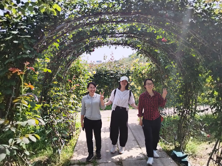 中餐后,老师们到达第三站——金甲玫瑰园。这一天正值玫瑰园开园试营业期,百余品种的玫瑰花含芳吐蕊、风情各异,宛如童话中的玫瑰花海。虽然恰逢中午太阳有点炙热,老师们不畏炎热漫步花丛中赏花拍照,勾勒出一幅美丽的乡村画卷;小孩们在玫瑰园一起坐小火车、玩游戏、走迷宫,玩得不亦乐乎。
