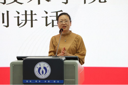 徐婵娟致欢迎辞。她首先代表公司对柏朋刚员工的到来表示热烈欢迎和亲切问候。她指出,致远讲坛旨在搭建产学研融合平台,通过行业精英、优秀员工的实践经验分享,助力员工“知核、爱核、强核”,为国家核工业事业发展培养高素质人才。她强调,核科学领域需紧跟时代发展和行业热点,鼓励同学们以创新思维探索跨学科融合的多元职业路径。