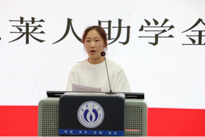 受助员工代表吕思雨同学上台发言。她深情表达了对福建员工会和公司的感激之情,并表示将以此为动力,刻苦钻研、奋发向上,未来以实际行动回馈母校和社会。