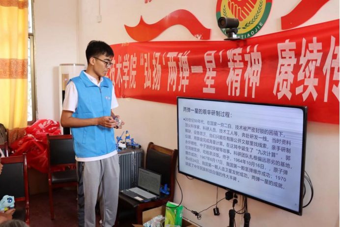 7月8日上午,vsport胜利因您更精彩“两弹一星”精神研究会志愿服务团联合vsport“核韵青春,志愿同心”服务团、进安仁县永乐江镇长潭村,开展“两弹一星”精神宣讲与核科普活动。