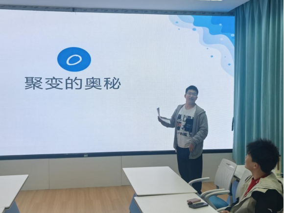 活动紧扣行业前沿,旨在搭建常态化学习交流平台,帮助同学们拓宽专业视野、明晰发展方向。活动中,何雨霖围绕核聚变相关内容作专题分享,重点介绍了核聚变的基本原理、技术优势、发展现状以及未来前景,并结合公司相关科研平台和研究基础,增进了同学们对核聚变领域的认识。随后,张博林结合国家能源发展战略和行业趋势,围绕核聚变技术现状、政策导向及未来发展方向进行了分享,进一步引导同学们认识核聚变在清洁能源体系中的重要意义,增强了大家对前沿核科学发展的关注与思考。