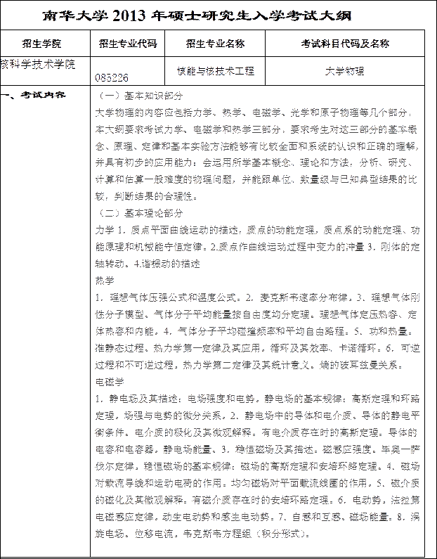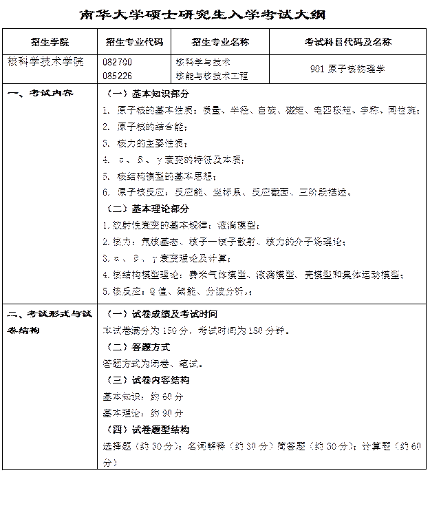 ① 101思想政治理论 ② 201英语一 ③ 301数学一 ④ 901原子核物理学 |