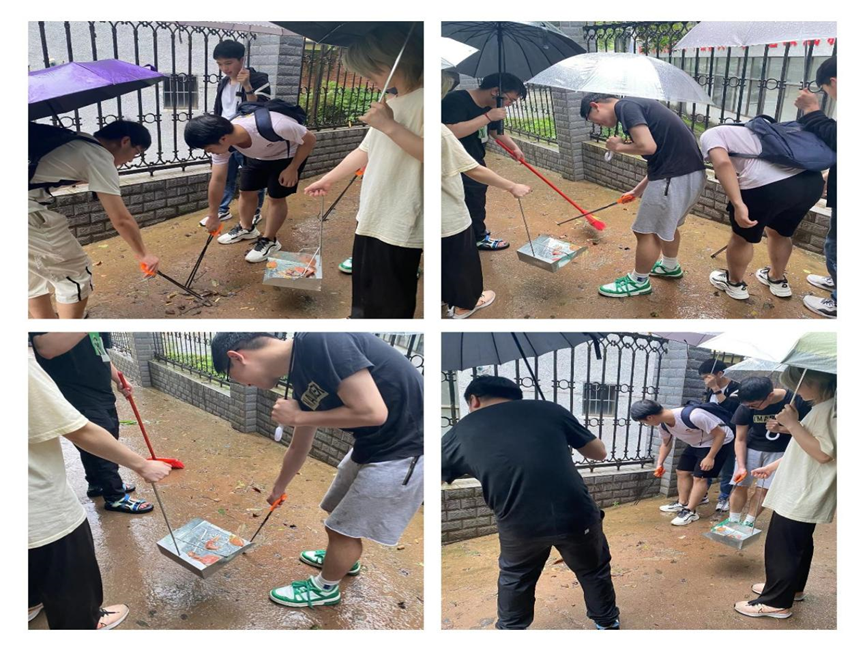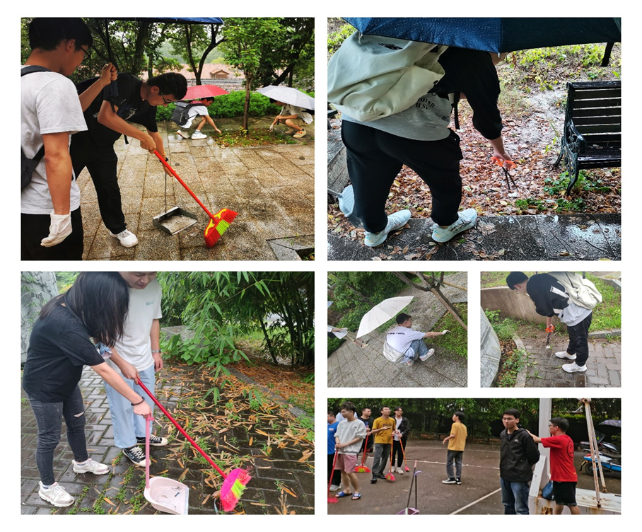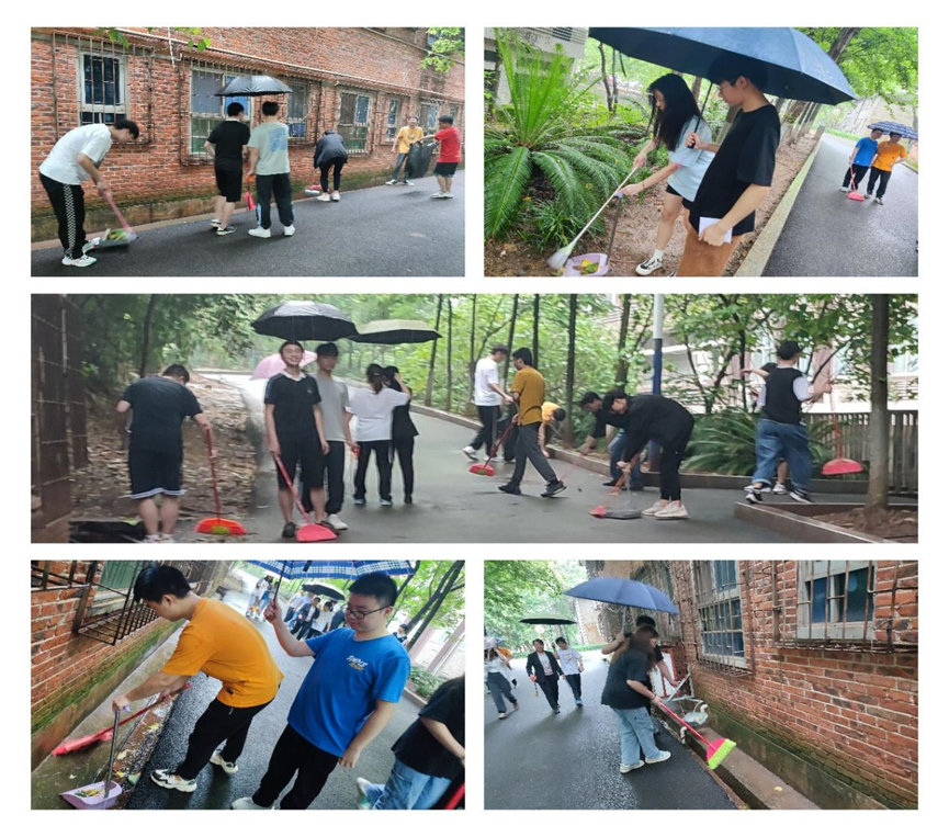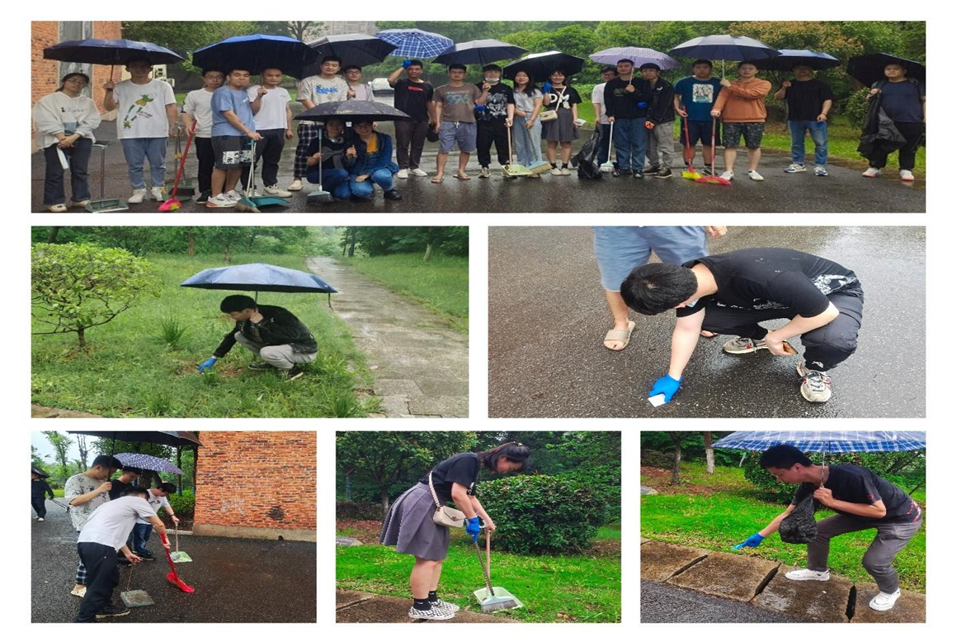 5月27日下午16:30,由公司党委书记赵立宏带队,公司党委副书记马军、院教师第一党支部书记杜雪成、院员工第一党支部书记朱菲菲、院教师第三党支部支委汤凌志等老师作为责任区负责人带领活动参与者在校财务处对面篮球场集合分发劳动工具强调活动目的后根据责任区安排,大家一起捡拾责任区域路面、绿篱下及绿地内的白色垃圾、瓜果皮核、烟头及其他废弃物;清理责任区域楼房的外墙面、电线杆上、树干上、篮球架及网球架上的牛皮癣;清除责任区域绿地的杂草、枯枝败叶等,保持果皮箱及果皮箱周边清洁干净;最终将所有清扫垃圾集中堆放入垃圾箱。