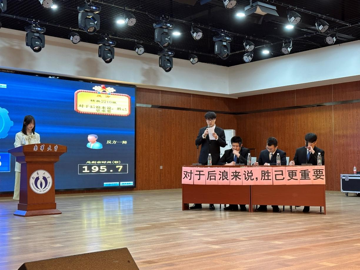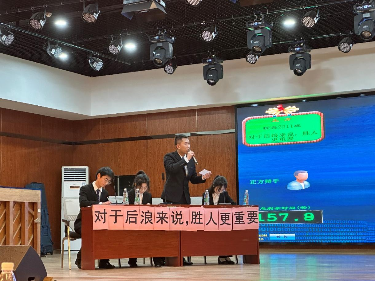 双方辩手围绕“对于后浪而言,是胜人更重要还是胜己更重要”这一辩题进行辩论。比赛正式开始后,先由两方的一辩阐述了各自的立论,随后两队围绕辩题展开激烈交锋。双方辩手唇枪舌战,气势不凡,条理清晰又不失风度。辩论还设置了观众提问环节,现场观赛嘉宾提问者络绎不绝,氛围热烈,选手们对观众们的提问进行了回答与思辨。