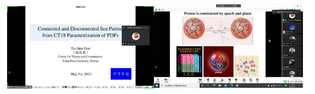 2022年5月1日下午,正值国际劳动节之际,来自台湾的侯铁君博士受邀远程给核院师生作了题为“ConnectedandDisconnectedSea Partons from CT18 Parametrization of PDFs”的学术报告。报告由副经理郑波教授主持,公司部分教师、研究生参加了此次学术交流。