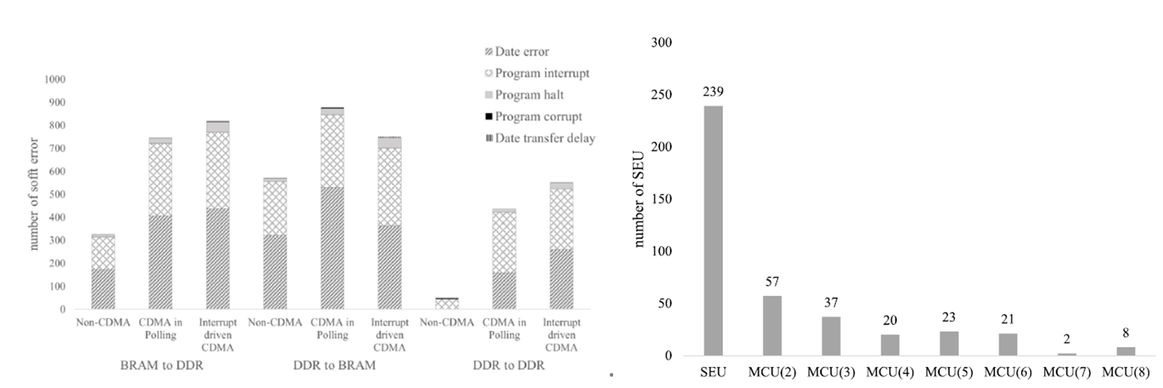 (a)AXI-CDMA模块软错误故障类型分布 (b)单粒子翻转统计