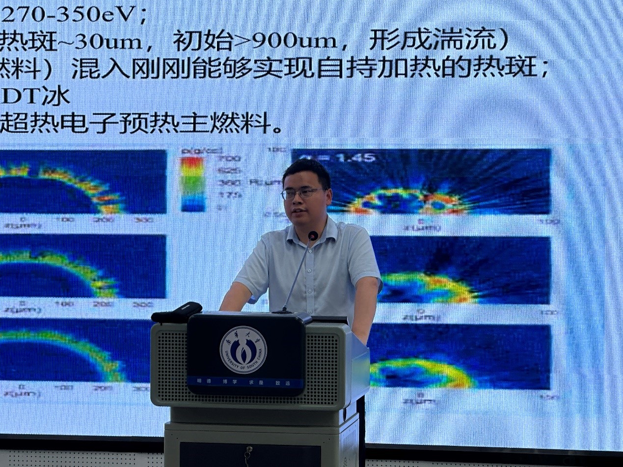 随后,刘盼作题为“人工智能协同大数据与高性能计算驱动聚变物理设计”的学术报告。他从厘清惯性约束聚变在能量输入和压缩机制的不同出发,建立了聚变知识图谱(AI大模型)和材料参数库,以提高参数库的置信度为目标生成网络对抗,并详细介绍了人工智能协同大数据与高性能计算驱动聚变物理设计的理论与技术路线,以及构建人工智能书写聚变物理超算程序的源代码。