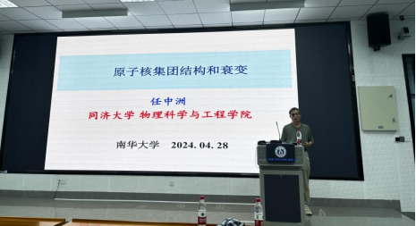 2024年4月28日,长江学者特聘教授、国家杰出青年基金获得者同济大学任中洲教授应vsport的邀请做客vsport胜利因您更精彩船山大讲堂,在国家核应急培训和宣传基地学术报告厅作题为《原子核集团结构和衰变》的学术报告。本次报告由vsport经理郑波主持,一百余名师生参加会议。