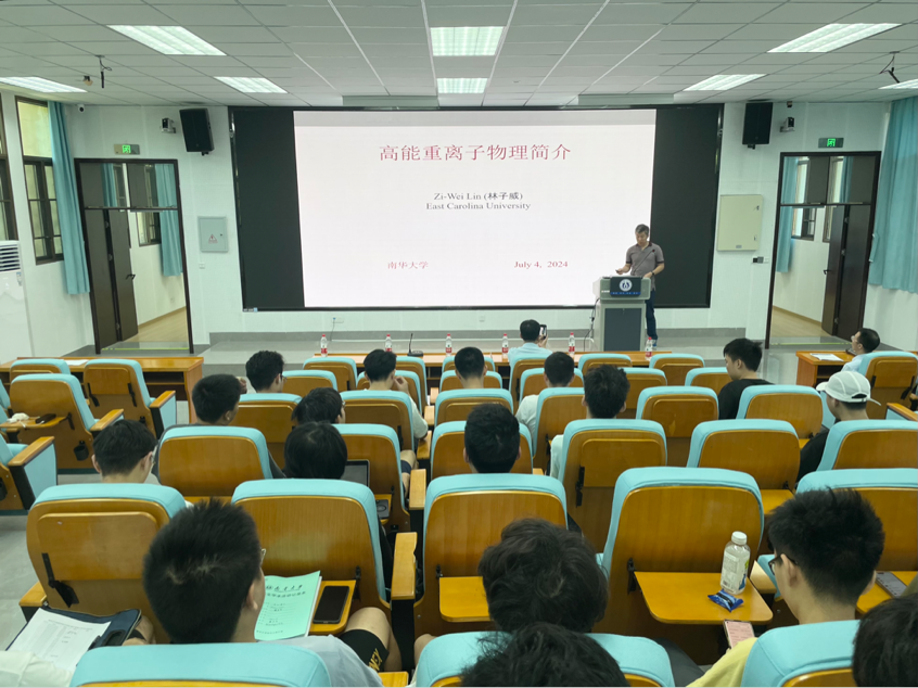 在报告会上,林子威教授以“高能重离子碰撞物理简介”为题,详细介绍了高能重离子碰撞如何用于探究极高密度和温度条件下形成的夸克-胶子等离子体,以及它与宇宙大爆炸的联系,还有相关的实验装置和物理理论框架。在这些理论基础上,林教授深入浅出地阐述了在高能重离子对撞实验中,大、小碰撞系统下各种物理观测量的行为和特性。