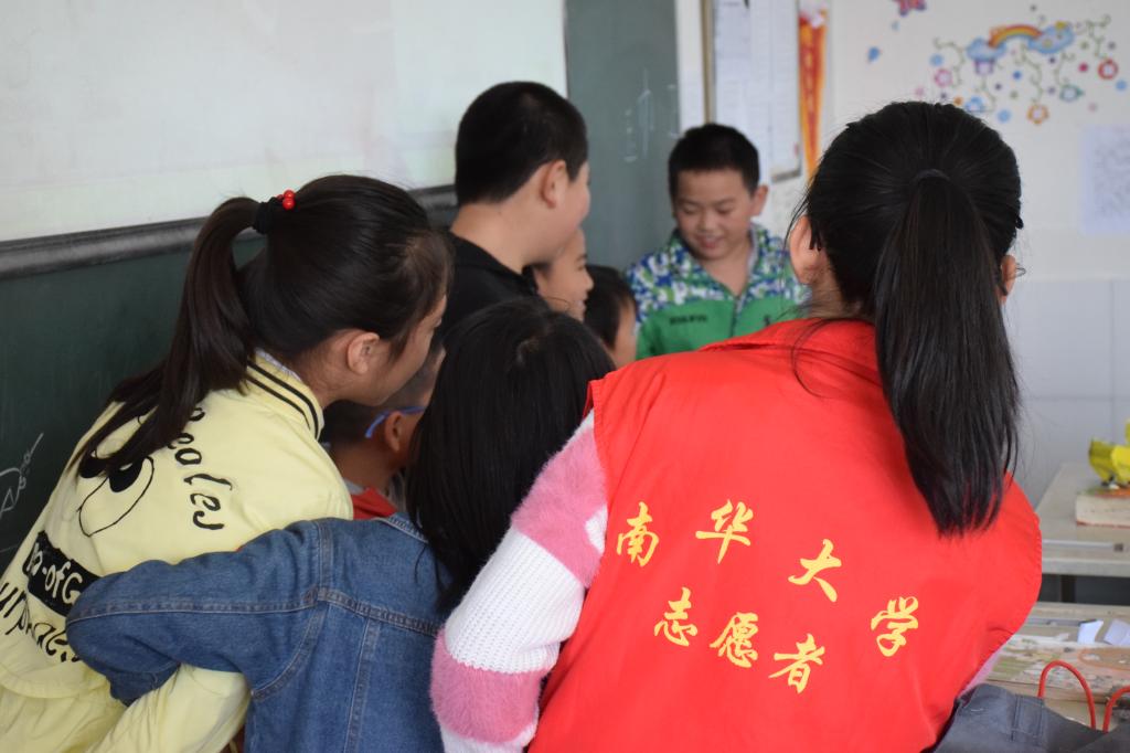 本次活动采用小组分工的形式与孩子们互动交流,队员们针对性地分别一二、三四、五六年纪进行核知识普及并开展小游戏等。在一二年纪教室里,面对着大屏幕,一位位小朋友晃动着脑袋,眼里闪烁着疑惑、新奇。最终在志愿者的解释下,纯真孩童们知晓了令人谈之色变的"核"。而在三四年纪教室,孩子们认真安静地倾听着屏幕上主持人讲述我国核工业发展的心酸历程,为老一辈核工业事业建设者的奉献精神所折服。在这时,隔壁五六年级教室里掀起了一阵热烈的掌声,原来是一位小朋友从容不迫地回答出志愿者的提问。为达到让孩子们在玩乐中加强对衡阳——我国核工业发展摇篮的了解,志愿者团队制定了不同的活动方案,如采用奖罚制度对孩子进行提问。而词语接龙、击鼓表演等小游戏也激起孩子们活泼向上、乐观开朗的天性,教室里笑声一片。同时,志愿者们还乐于倾听孩子的心声,引导他们大胆讲出内心所想,并鼓励其坚守内心的梦想一路走下去,奋力前行。最后,志愿者团队还为孩子们展示了精彩的舞狮表演,为孩子们带去欢乐的同时意在激发其对民间传统文化的重视,增强文化自信。