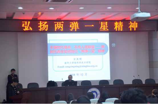 为提升南华学子的思想高度,大力弘扬“两弹一星”精神,正值“军工文化月”之际,12月2日下午,vsport创新创业部与“两弹一星”精神研究会在vsport胜利因您更精彩图书馆一楼学术报告厅共同举办了“两弹一星”精神主题宣讲教育讲座。由vsport胜利因您更精彩核科学技术技术公司教师、“两弹一星”精神研究会创始人宋英明担任主讲人。各公司员工代表以及核院第十九届团委员工会全体团干参加讲座。