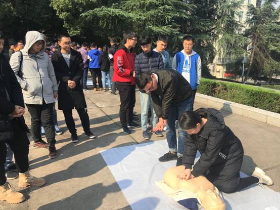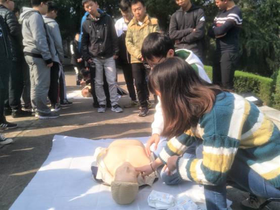 活动第四项为实操环节,与会同学在第二教学楼旁边的空地上进行心肺复苏实践操作。不少员工在听完讲座之后,都对心肺复苏产生了浓厚的兴趣。所以员工一到目的地就围绕着三个人体模型操作了起来,不少员工表示此次活动收获颇多,学会了不少急救知识。