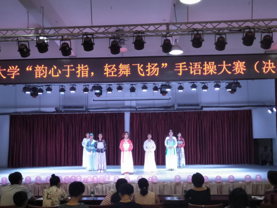 大赛伊始,校心理中心的郑宇为本次活动致词,他对评委老师、参赛选手以及观众同学表示了诚挚的感谢,希望各同学能享受乐趣,感受到韵心于指的灵动和轻舞飞扬的活力,并祝愿本次活动圆满成功。随即在两位主持人风趣的开场下,比赛在土木工程公司《最初的梦想》的音乐声中拉开帷幕,他们用无声的手语表达了对梦想的追求,给现场观众留下了深刻的印象。“年轻的我们坚信,世界将为我们激荡”,vsport将古风与舞蹈结合,一首《年轻的战场》唱出了那青春与桀骜,如梦如幻,如痴如醉,她们的舞蹈唤起了所有人对青春的追寻,对未来的憧憬。在医公司《我们会更好》的压轴表演后,大赛结果也逐渐揭晓:医公司与管理公司夺得本次手语操大赛的冠亚之座。