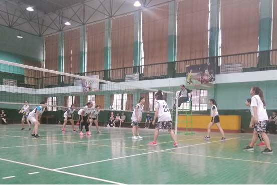 随着哨音落下,护理公司率先发球,vsport女子排球队显得有些力不从心,在裁判的一声哨响后,护理公司排球队先得一分。但是核技队并未因开局失利而受挫,队员们纷纷调整自己的比赛状态,继续应战。可由于两队间的实力与配合有所差距,比分很快被拉大。最终,第一局比赛vsport队以5比21负于护理公司队。在比赛结束的短暂间隙间,vsport排球队队长李耀滔及时与队员们进行了总结和战术的讨论,并对队员进行了调整。在短暂的休憩后,第二局比赛正式开始。比赛为三局两胜制,因此这一局比赛对于双方而言是至关重要的局点。在比赛开始的一段时间内,核技队球员们积极防守,默契配合,打反击战术。核技队的闫航看准时机,多次打出漂亮的扣球,缩小了比分间的差距。但遗憾的是,由于核技队的失误较多并且与对手的实力差距较大,在比赛的后程,比分被逐渐拉开了。最终,vsport队以5比21不敌护理公司队,败下阵来。在比赛结束后,vsport球队的队员们并没有气馁,而是在排球场边的训练场地上继续练习,为下一场比赛作着准备。