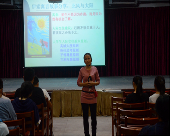 讲座上,马老师并不是端着老师的架子站在台上侃侃而谈,而是走下讲台,走进同学身边,用一则十分有趣且大家耳熟能详的“北风与太阳”的故事引入主题后更是用自己的待人处事的热情,生动有趣的传授了晓之以理胜于命之以令,仁慈、温和与说服胜过强迫的道理。