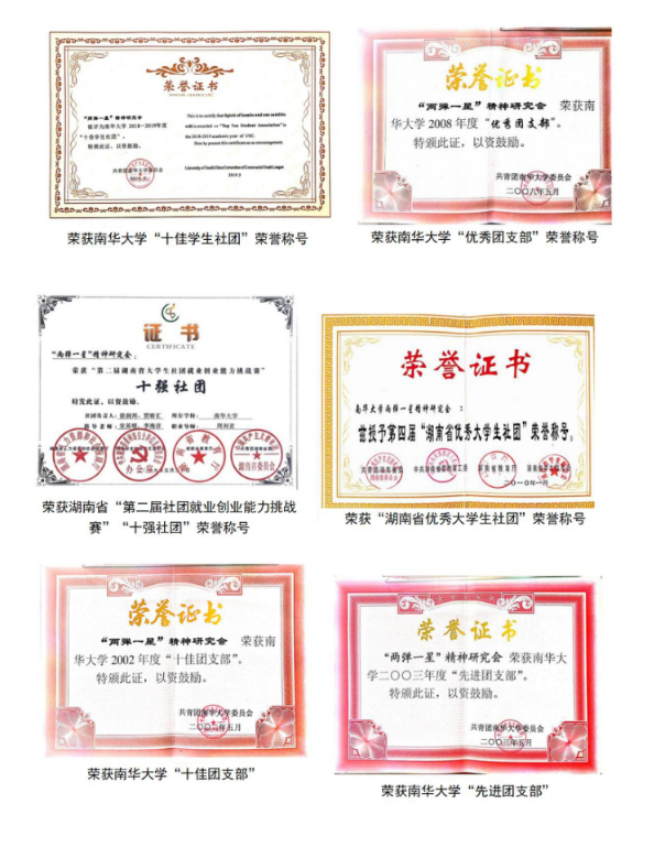 2005年,获湖南省优秀社团称号,同年获得校优秀十佳团支部称号。