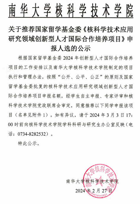 下一条:关于国家留学基金“核科学技术应用研究领域创新型人才国际合作培养项目” 开放报名的通知