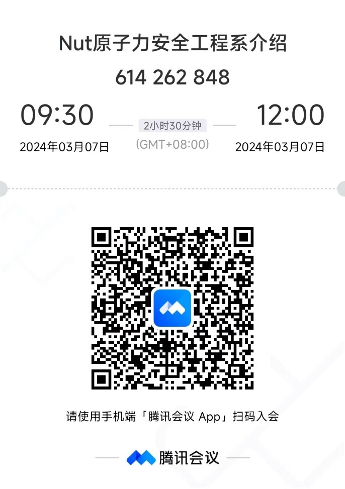 为了能够让公司同学更好地了解NUT原子力安全工程系,同时做好2020级本科生推免项目,北京时间2024年3月7日10:00-12:00由NUT原子力安全工程系主任:Prof. Weihua Jiang(江伟华教授)通过腾讯会议方式(链接与入会密码附后)向同学们介绍NUT原子力安全工程系相关情况。